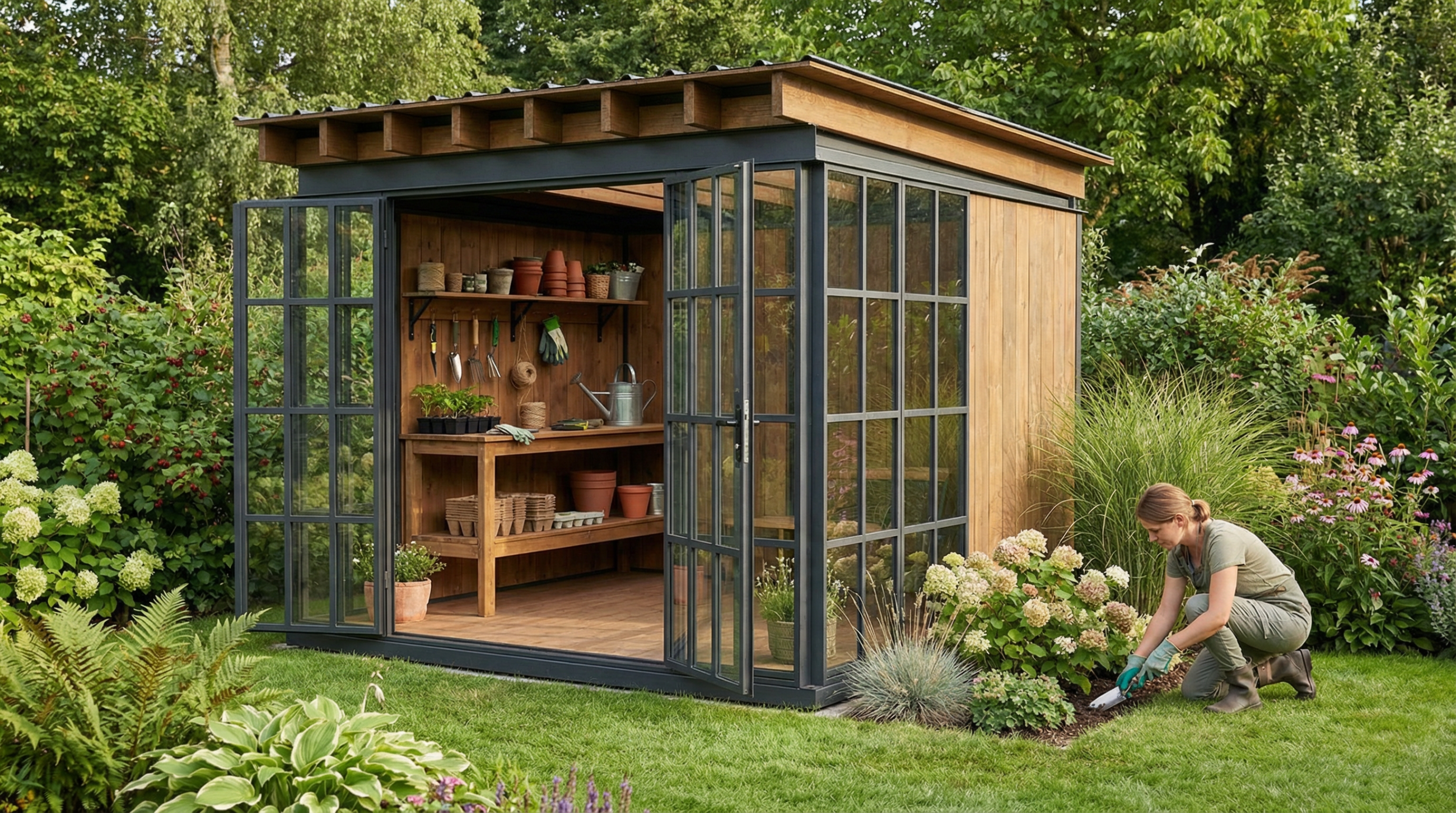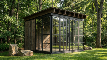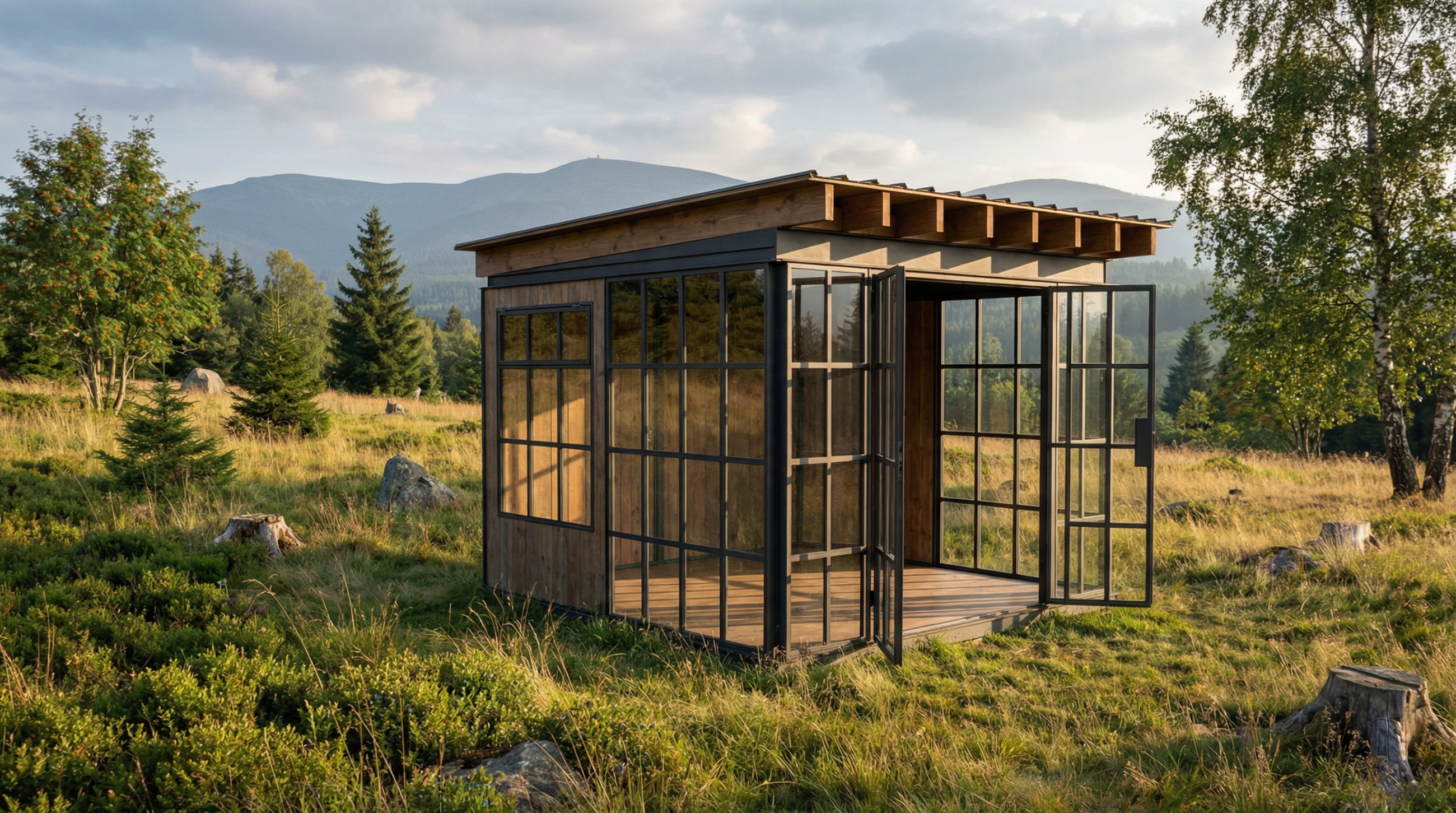 Dřevo, kov a sklo — čisté materiály bez plastů a kompromisů. Poctivá ruční výroba v Česku v nadčasovém gazebo stylu. Altán, který mění vaši zahradu v prostor pro život i práci.